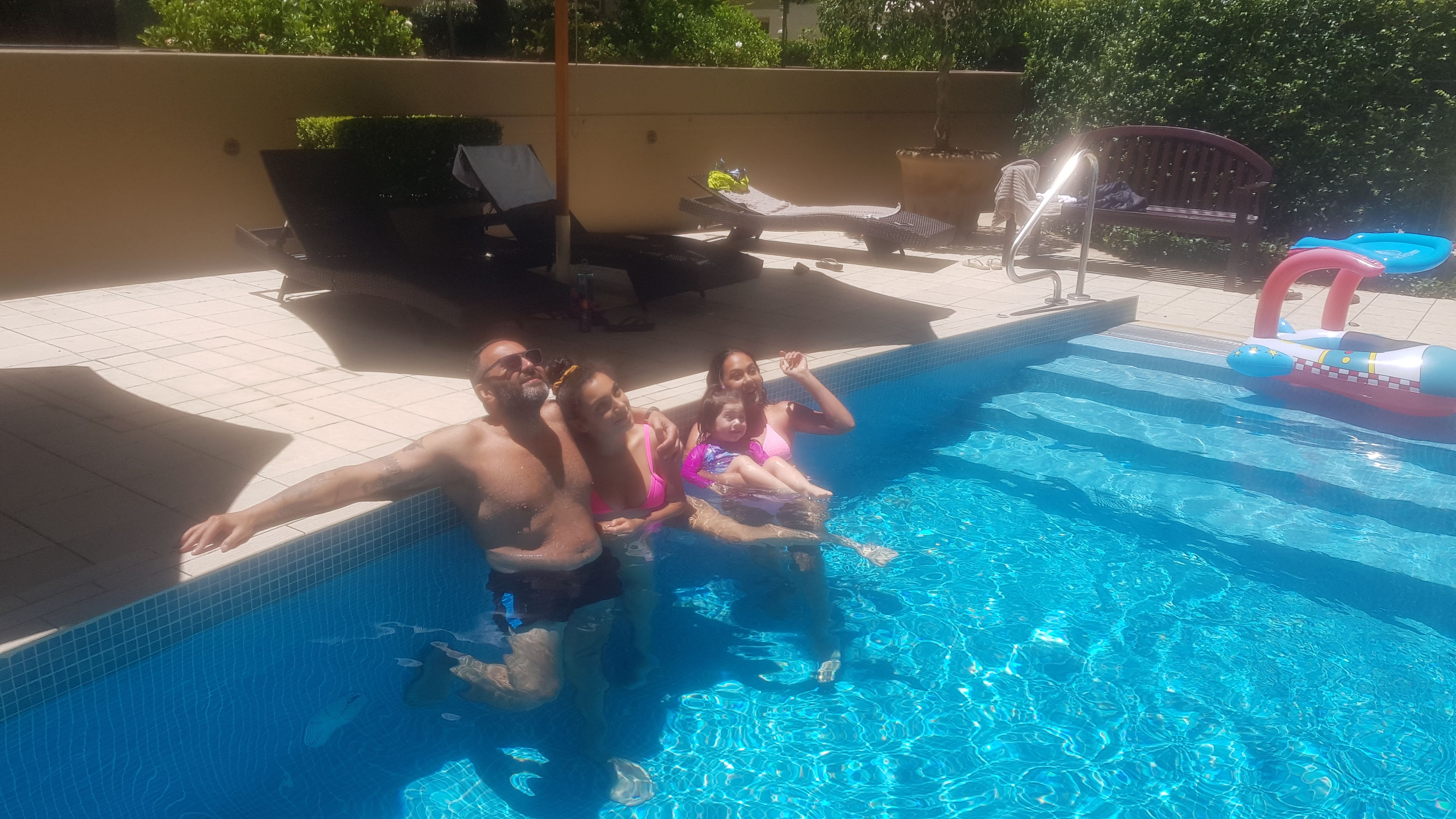 Hot weather relaxing in the pool